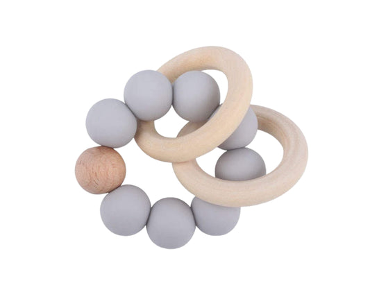 Anneau de dentition texturé en silicone et bois - mélange rose